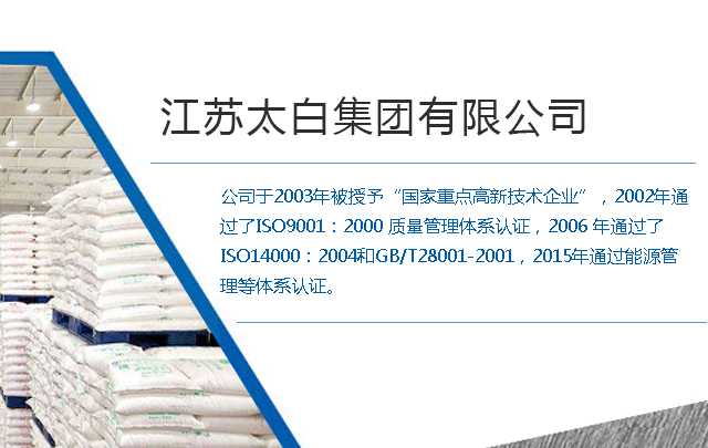 江蘇太白集團(tuán)有限公司是中國(guó)鈦白粉行業(yè)的骨干生產(chǎn)企業(yè)之一,擁有年產(chǎn)8萬(wàn)噸高檔金紅石型鈦白粉、10萬(wàn)噸聚合硫酸鐵以及25萬(wàn)噸硫酸的生產(chǎn)能力。